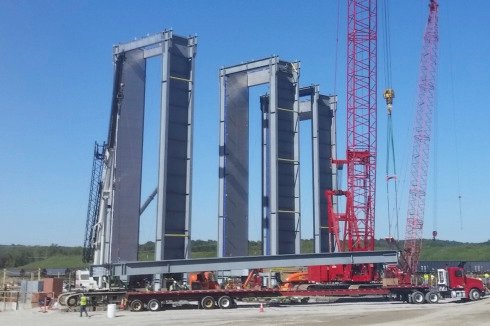 Erection of boiler support structures and casings.